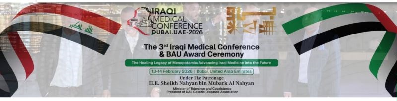 عُقد حفل جوائز BAU لعام 2026 في مدينة دبي – الإمارات العربية المتحدة، يومي 13 و14 فبراير 2026، تحت رعاية سعادة الشيخ نهيان بن مبارك آل نهيان، وزير التسامح والتعايش، وذلك ضمن فعاليات المؤتمر الطبي العراقي الثالث، في تظاهرة علمية جمعت نخبة من الكفاءات الطبية والأكاديمية العراقية والإقليمية.